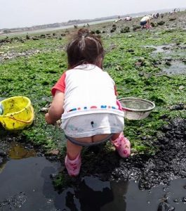 子供たちは貝採りに夢中になると、汚れやお尻丸出しに気が付きません(笑)
